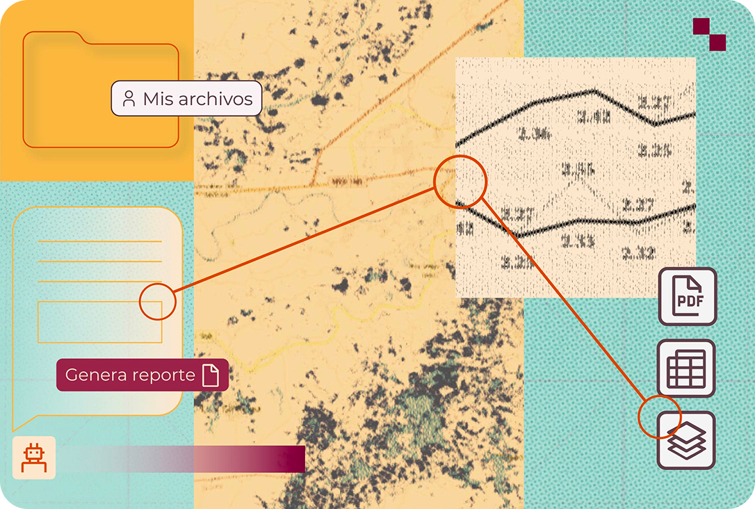 Sube información en distintos formatos, agrégale un componente geográfico y úsala directamente en tus proyectos de IA, análisis o visualizaciones sin necesidad de herramientas externas.
